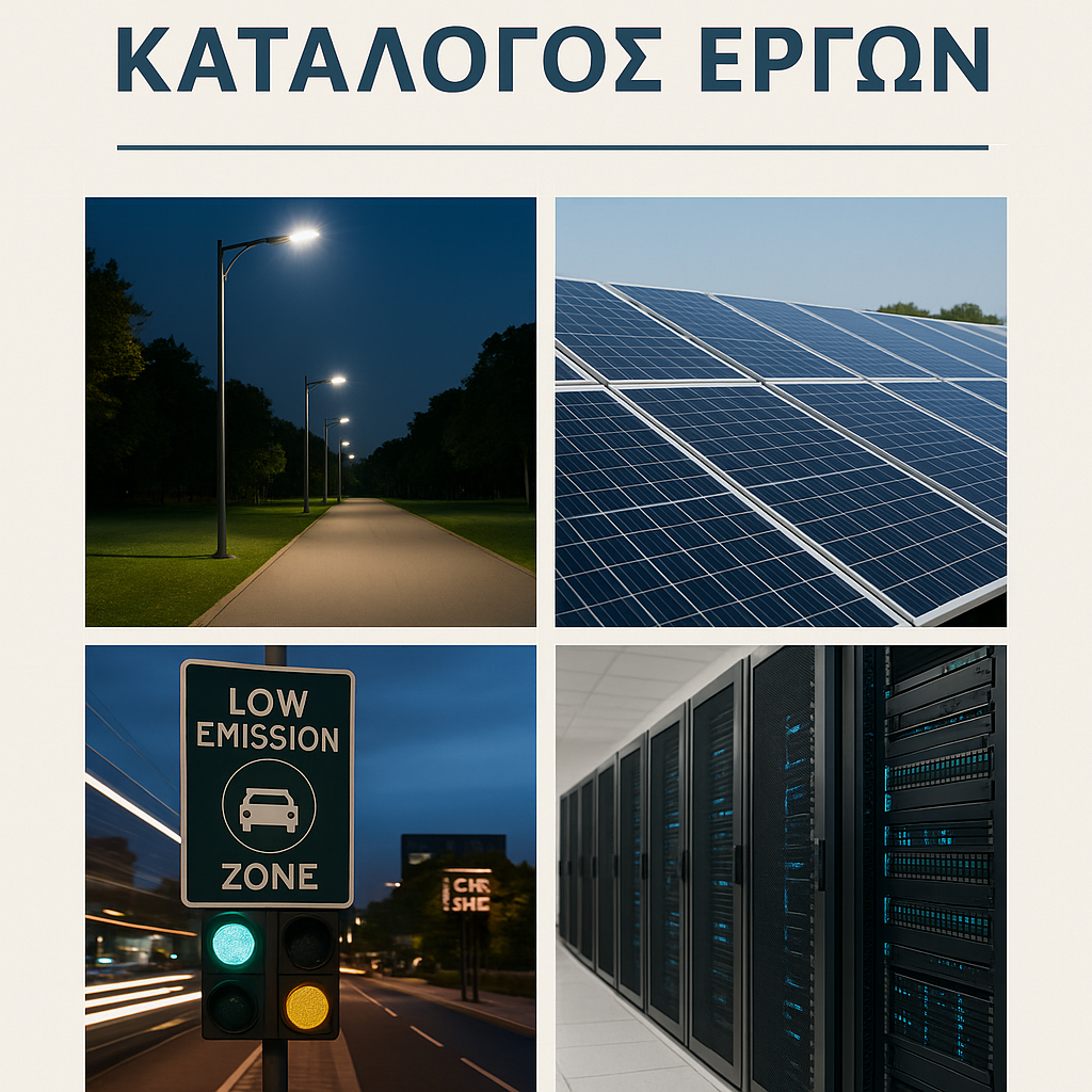 Από παρεμβάσεις ενεργειακής αναβάθμισης και έργα smart city έως εξειδικευμένες τεχνικές υπηρεσίες και εφαρμογές ψηφιακού μετασχηματισμού, ο κατάλογος παρουσιάζει το εύρος και την ποιότητα της δουλειάς μας. Για κάθε έργο αναδεικνύονται τα κύρια χαρακτηριστικά, η τεχνική προσέγγιση, οι καινοτομίες που εφαρμόστηκαν και τα οφέλη που προέκυψαν για τον φορέα και τους πολίτες.
